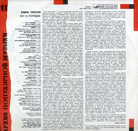 АвторТема: Elvis Presley - That's All Right. LP Мелодия М60 48919 003 (1989) (320 kbps)  (Прочитано 84 раз)